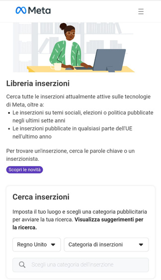 Partiamo dall’ecosistema META utilizzando la facebook Ads Library